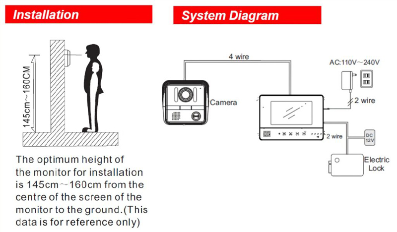 Introducing the Video Door Phone Installation! This amazing product allows the occupant to see who has called, talk to the visitor and open the door. Installed indoors, the monitor consists of a screen showing the image of the person calling, a microphone and earpiece for conversation and a pushbutton to trigger the door lock release. The Video Door Phone Installation is perfect for anyone who wants to keep their family safe and feel secure in their home. So why wait? Order your Video Door Phone Installation today!